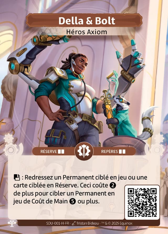 Avec les cartes exaltées, nous souhaitons réintroduire dans l’ouverture de booster ce petit frisson d’excitation quand on sait qu’on vient d’ouvrir une carte qui n’est pas comme les autres. Elles sont immédiatement reconnaissables : leur gemme de rareté est en bronze et leur cadre est différent, à mi-chemin entre les cartes rares et les cartes uniques, travaillé pour mettre en valeur l’illustration et leur donner leur apparence exclusive. Il s’agit des meilleures cartes de l’édition en dehors des uniques et leur design a été pensé pour la synergie et le fun afin d’inviter les joueurs et joueuses à construire tout type de stratégies pour les faire briller.