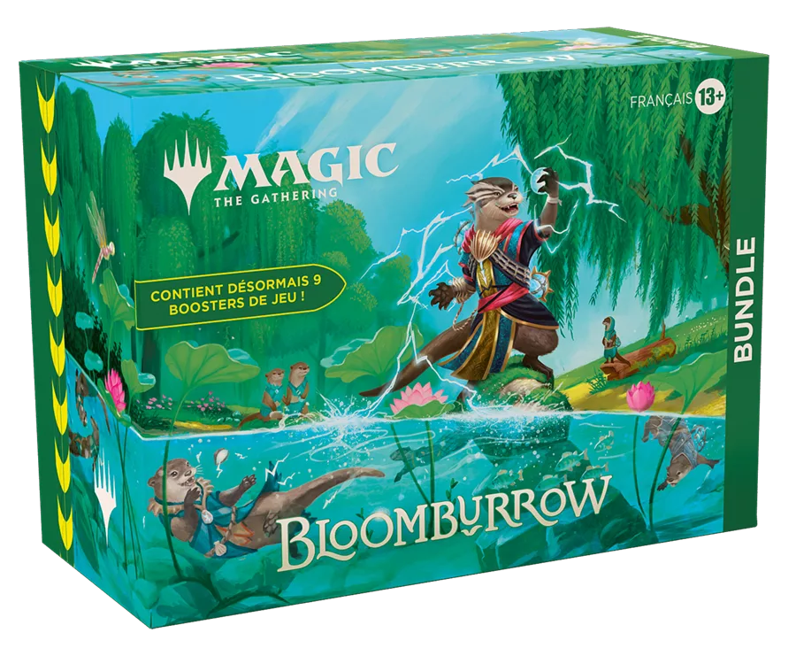 - CONTENU DU BUNDLE : 9 boosters de jeu MTG Bloomburrow, 1 carte Premium traditionnelle à illustration alternative, 30 cartes de terrain (15 Premium, 15 non-Premium), 1 compteur de points de vie Spindown, 1 boîte de rangement de cartes et 2 fiches de référence