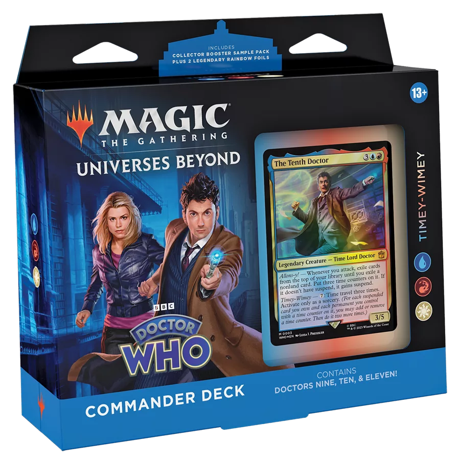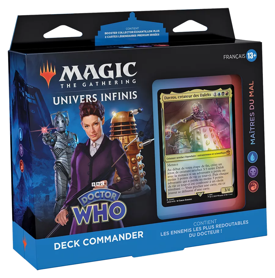 - PLUS GRAND À L’INTÉRIEUR : donnez vie à vos personnages et méchants préférés de Doctor Who, et vivez vos aventures autour de votre table avec ce deck Commander Magic: The Gathering ; chaque deck introduit 50 cartes Magic inédites avec des illustrations et des mécaniques de jeu inspirées par la série populaire de la BBC