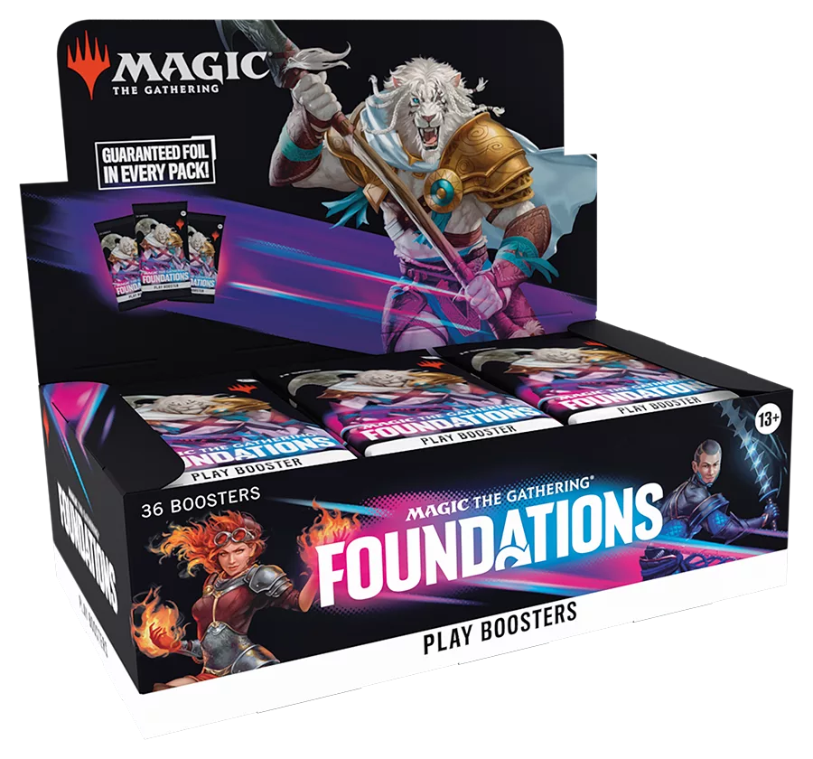 - CONTENU DE LA BOÎTE DE BOOSTERS DE JEU : 36 boosters de jeu Fondations, contenant chacun 14 cartes MTG et une carte de jeton/publicitaire ou carte d’illustration