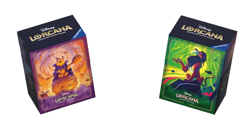Chaque boîte de deck peut contenir jusqu’à 80 cartes protégées. Ces boîtes de deck pour le JCC Disney Lorcana présenteront les mêmes illustrations de Scar et Winnie l’Ourson que les protège-cartes.