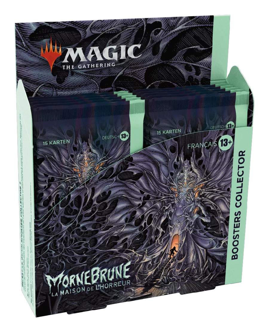 - CONTENU DES BOITES DE BOOSTER COLLECTOR : 12 boosters collector Mornebrune : La Maison de l’horreur, avec 15 cartes MTG dans chaque booster