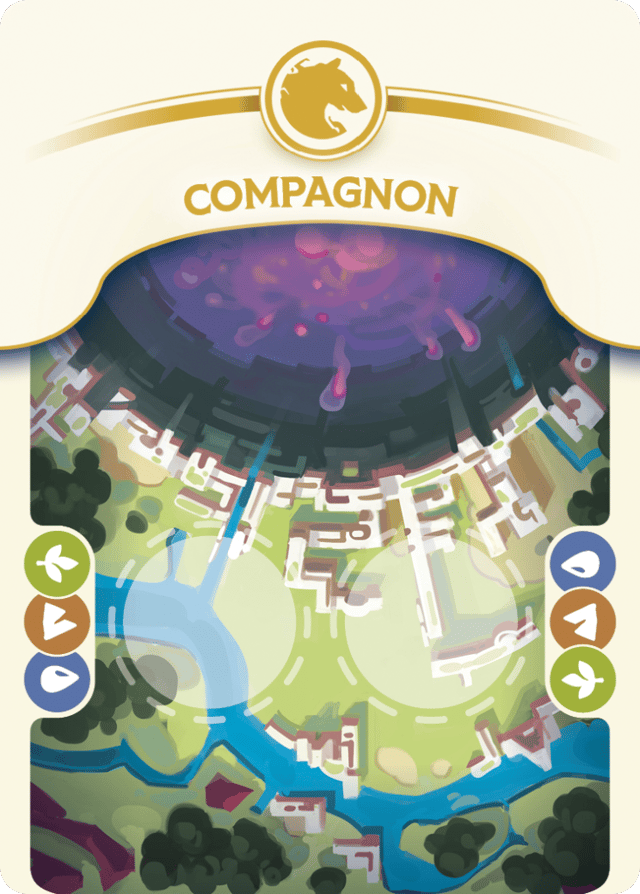 Murmures du Labyrinthe introduit une série de 6 triptyques, représentant des scènes divisées entre trois cartes de l’édition que tu peux recréer en les associant. Ces triptyques décrivent la vie à la surface et racontent comment chaque faction s’implique dans la vie de camp.