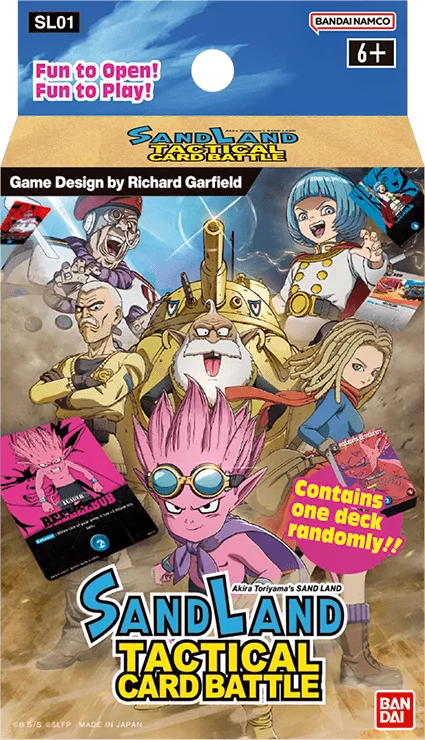 Ce jeu de cartes reprend l’histoire profonde de Sand Land, axée sur l’aventure, ainsi que les combats de mecha du jeu vidéo et les tactiques d’artisanat.