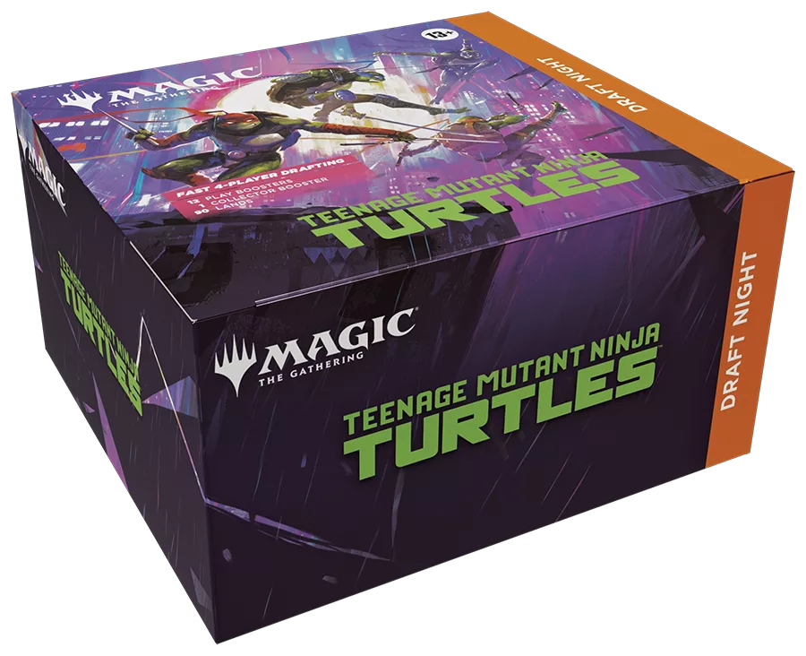 C’est une soirée de draft en boîte ! Soirée de draft est le kit indépendant pour organiser un Draft à deux choix pour quatre joueurs. Le Draft à deux choix encourage un draft rapide, dynamique et idéal pour jouer sur table ou apporter un soupçon de variété à vos soirées jeux ! Récompensez le gagnant avec le booster collector Magic: The Gathering® | Teenage Mutant Ninja Turtles inclus (vous pouvez aussi le garder pour vous, nous ne vous jugerons pas). Il vous suffit d’ajouter de la pizza et vous avez une soirée idéale entre amis !