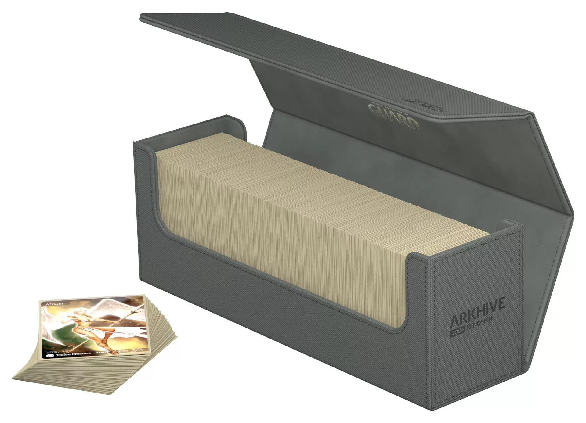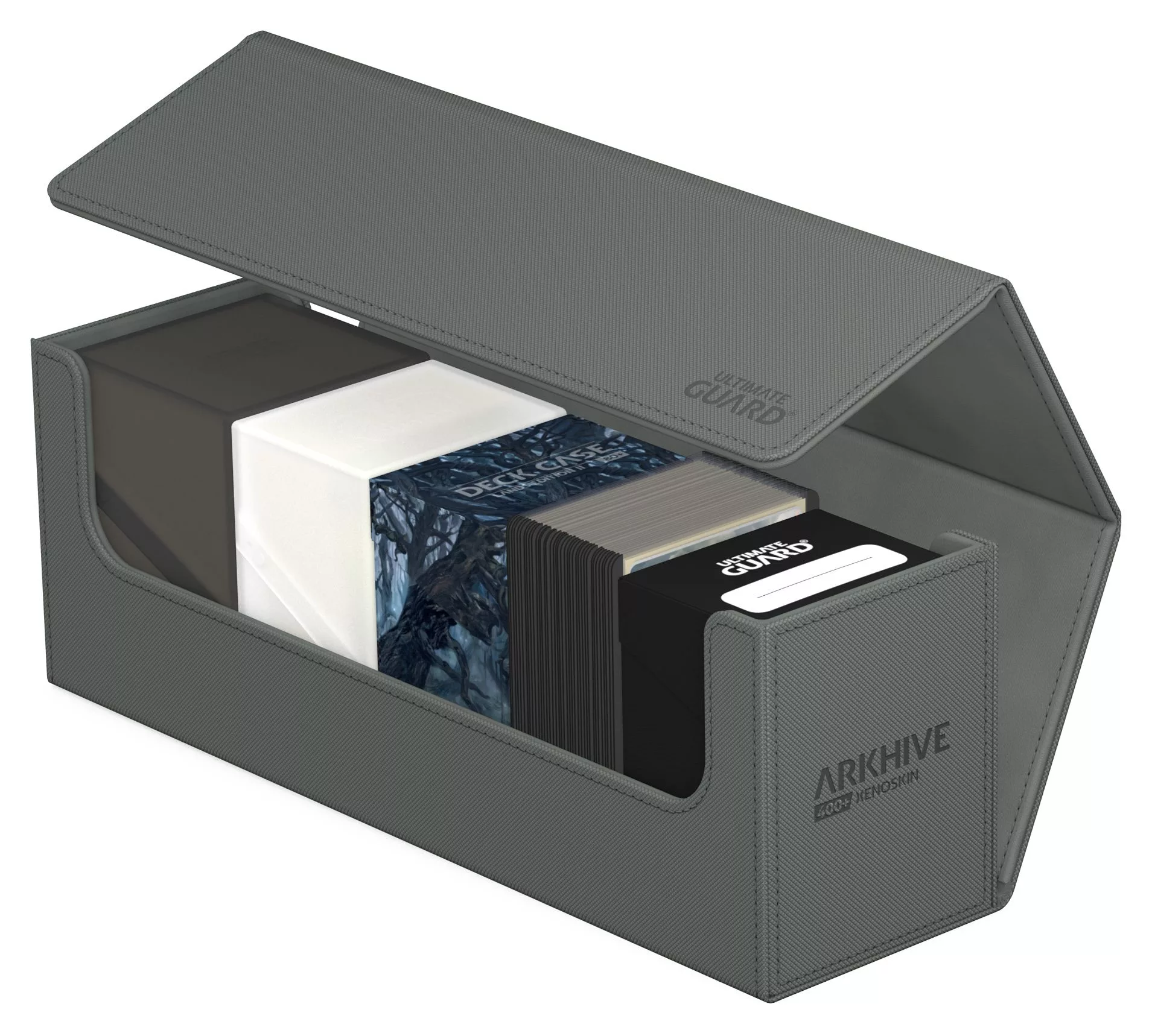 Affichez vos couleurs de l’intérieur à l’extérieur avec notre design monochrome vibrant et élégant. Optimisée pour contenir plus de 450 cartes en double-sleeve, plus de 500 cartes en simple-sleeve ou plus de 850 cartes sans pochette au format standard, l’Arkhive ne vous laissera jamais tomber*.