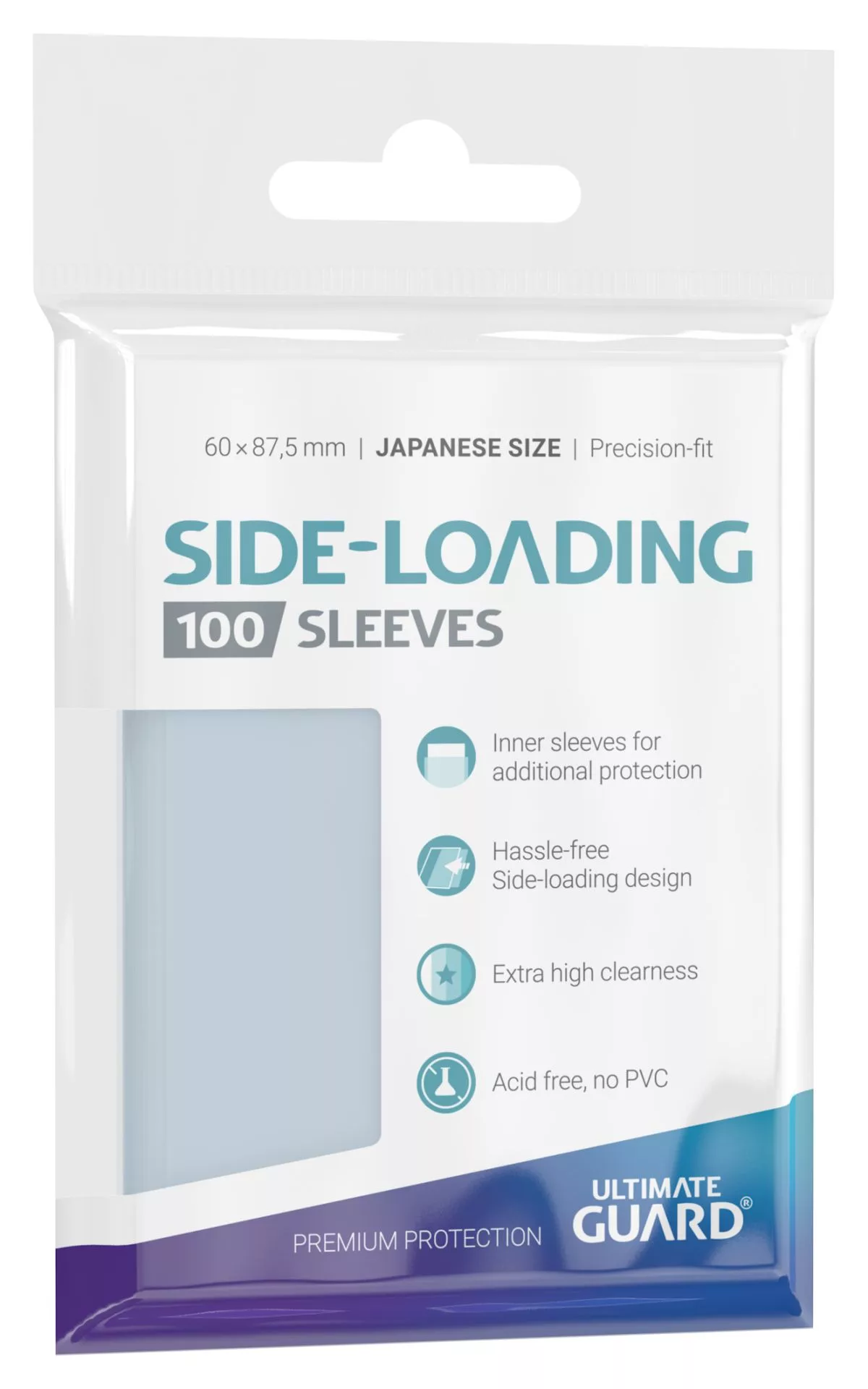 Ces pochettes conçues pour un chargement latéral s’insèrent parfaitement dans les pochettes Ultimate Guard (pochette en pochette). Idéales pour les cartes de jeu de taille japonaise, comme Yu-Gi-Oh!™, Naruto™, Dragon Ball™ et autres. 100 pochettes par pack.